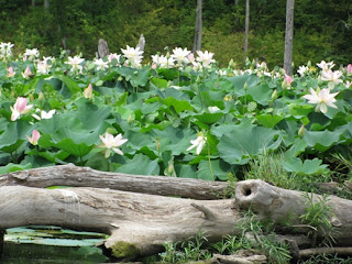 This species can be easily distinguished from our native American lotus. Native lotus have yellow petals and nearly round seeds, while the exotic lotus has pink or white petals with seeds that are oblong.